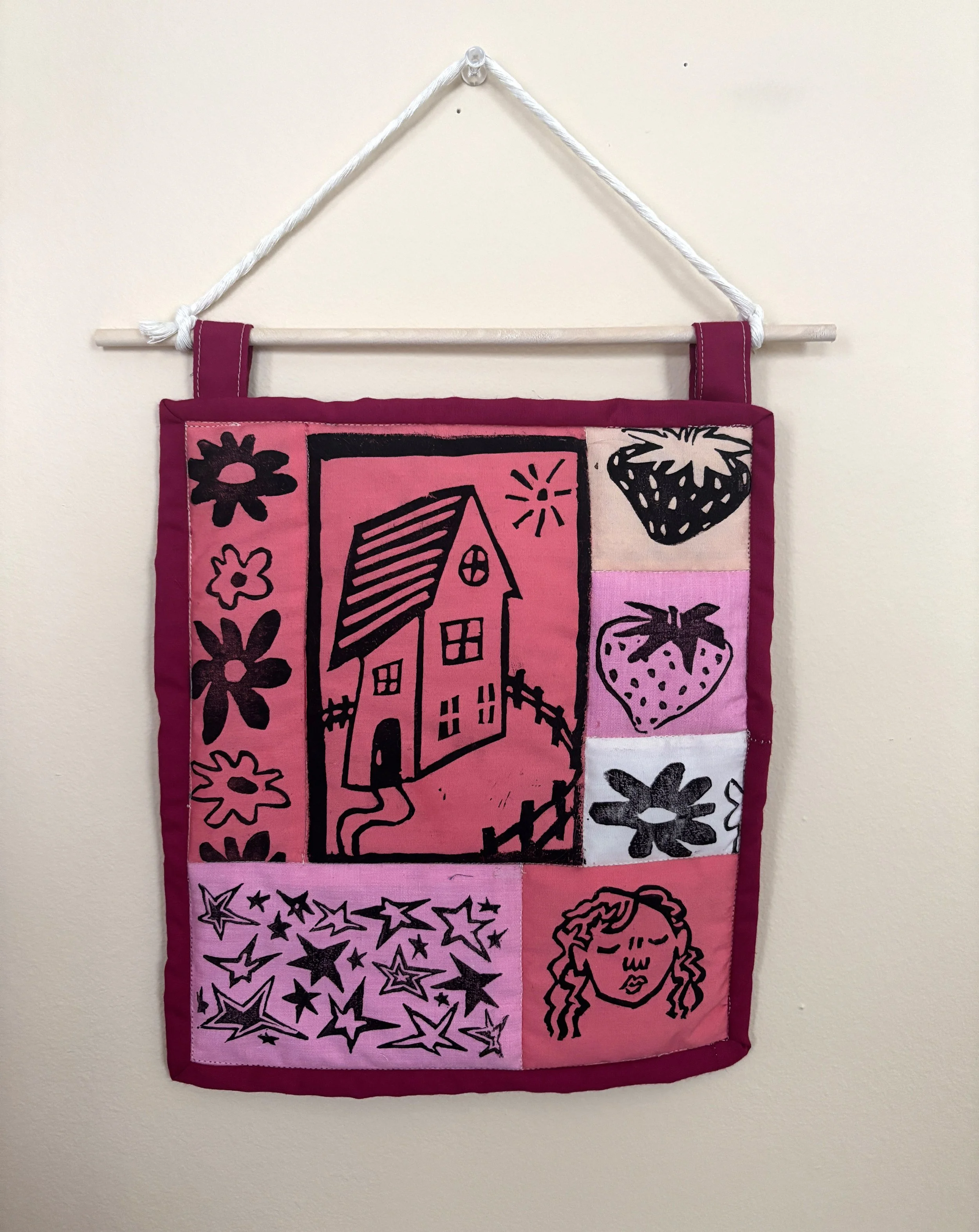 linocut pink mish mash - quilted